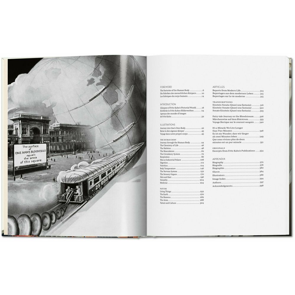The book features more than 350 illustrations with extensive captions, three original texts by Fritz Kahn himself, a foreword by Steven Heller, and an essay about Kahn's life and oeuvre.