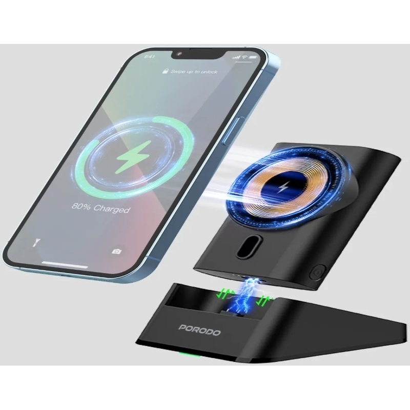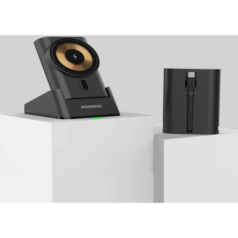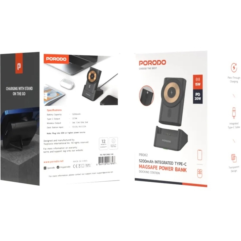 Porodo 40W Portable Transparent 3-In-1 Magsafe Wireless Charging Power Bank 5200mAh