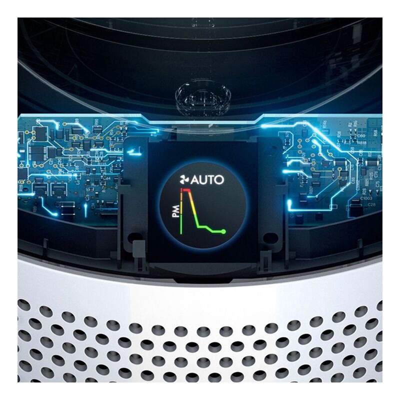 There are not one but two filtration phases. The 360° sealed filter system combines a HEPA and activated carbon filter to remove microscopic allergens and pollutants. And it's not just the filter that's sealed to HEPA H13 standard, it's the whole purifier. So what goes inside, stays inside.