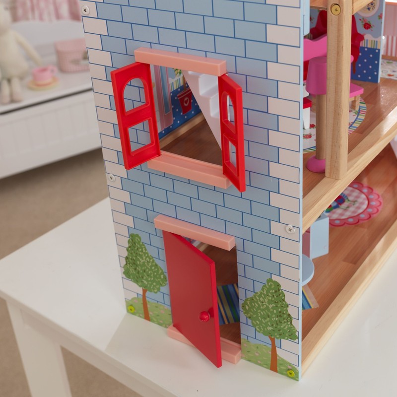 Our adorable and interactive KidKraft Chelsea Doll Cottage stands over two feet tall, with three levels and five rooms of fun just waiting to be discovered. This dollhouse has functional window shutters, two molded staircases and thoughtfully detailed artwork on every panel. With the included 16-piece furniture pack, children can have fun playing and decorating, whether setting up bunk beds in the kids' room or designing the perfect den with the little grand piano. This house is ideal for five-inch dolls.