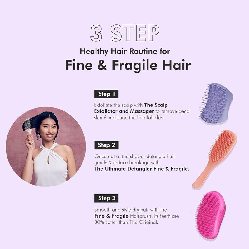 The future of your hair health is looking Berry Bright with our Fine & Fragile detangling hairbrush in this fruity shade. Designed for colour-treated, fine or fragile hair, this brush takes the fear out of brushing your delicate locks. Detangling wet or dry hair with its two-tiered soft-flex teeth - they're 30% softer than The Original - it glides from root to tip with no pulling and less breakage for tangle-free hair.