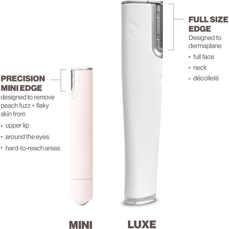 DERMAFLASH MINI helps to remove unwanted hair and dead skin cells. The tool is ergonomically designed to accommodate the hard-to-reach areas around the eyes, brows, nose and moustache region. Award-winning Sonic Edge Technology utilizes ultrasonic vibrations to help trim hair and exfoliate the skin, encouraging a smooth, radiant look. The tool is equipped with a cooling roller ball, seeking to minimize the look of puffiness around the eyes. The portable, cordless device is perfect for on-the-go touch-ups. Pair with the DERMAFLASH LUXE for a complete, full-face dermaplaning treatment.