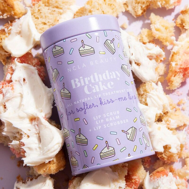 • Natural, vegan lip set with a sweet birthday cake scent.