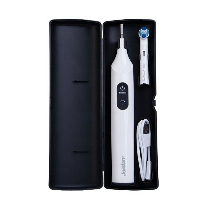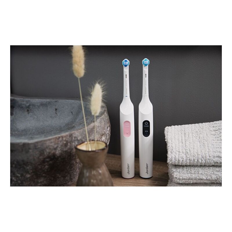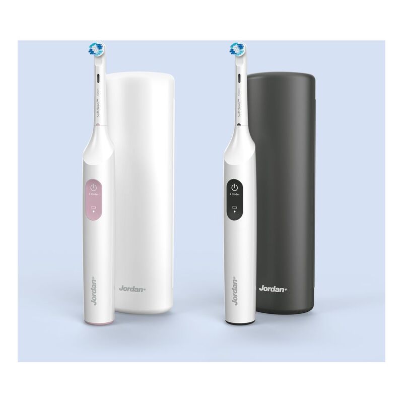 The Jordan Clean Smile series is a new generation of electric toothbrushes that makes it easy to keep your teeth clean by utilizing our SoftCleanTM Technology.Inspired by a Scandinavian design approah for simplicity and user-friendliness, the series combines the effectiveness of an electric toothbrush with the ease-of-use of a manual one. The Jordan Clean Smile series provides a top-quality and effective cleaning. The oscillating brush head technology provides a thorough cleaning and with 2 speed modes you are able to select the preferred intensity. The Jordan Clean Smile also come with a long lasting battery, giving you 3 weeks brush time per charge. In addition, we know that life is busy and it is easy to forget charging, therefore we developed a quick charge option, giving you 1 week of brushing time in just 20 minutes. The built in timer and pressure sensor also helps ensure that you get the best brushing experience, following the 2-minute recommendation by dentists and prevents hard brushing.