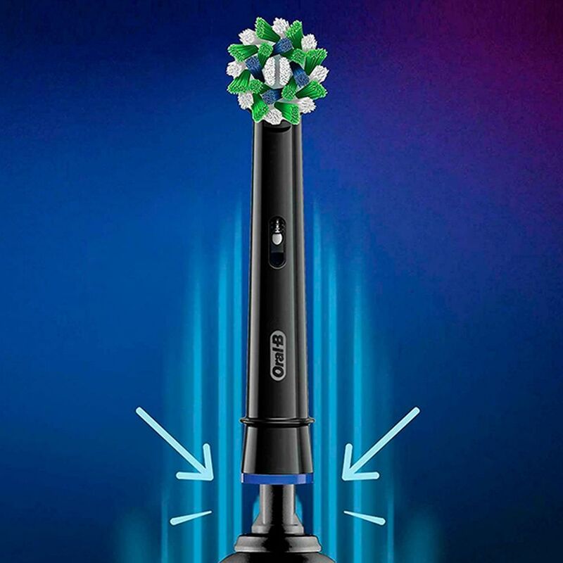 - Oral-B's exclusive round brush head cleans tooth-by-tooth for cleaner teeth and healthier gums.