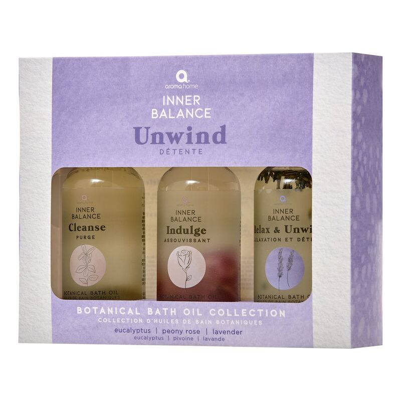 Connect with nature and restore your inner balance with this Unwind Bath Oil Trio.