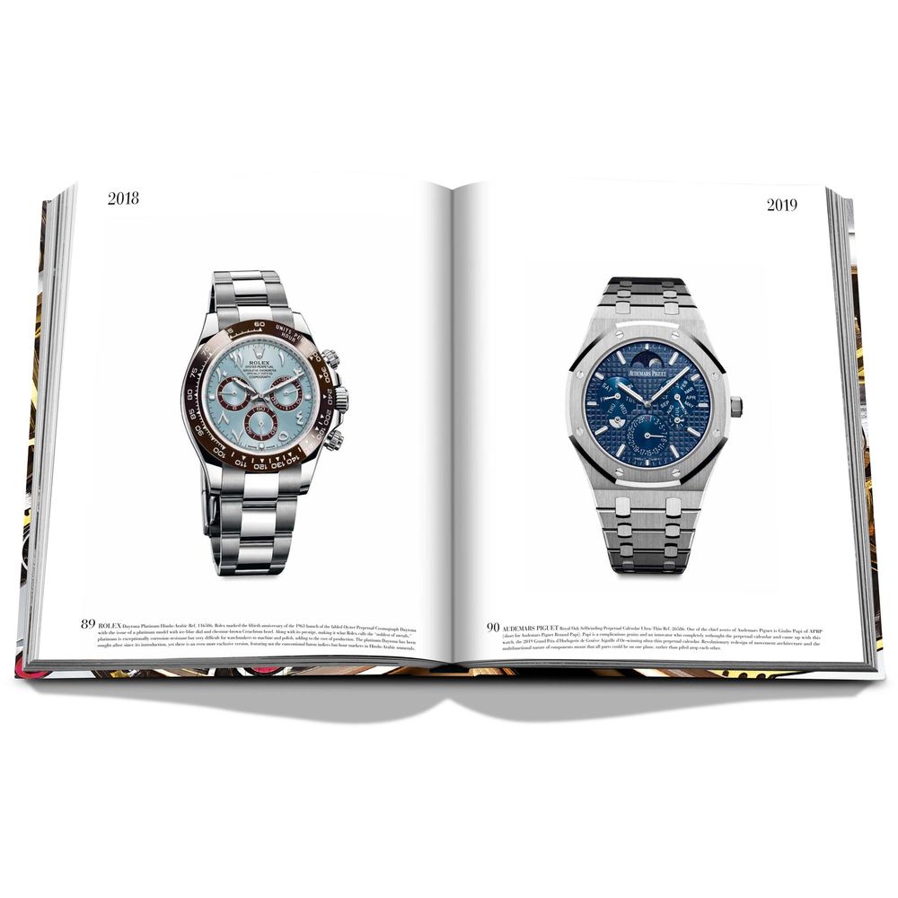 These miniature machines reflect the twentieth an...d twenty-first centuries’ incredible technological advances and social changes, from the invention of the airplane to the effects of two world wars to the advent of space exploration and the dawn of the digital age. Featuring illustrious names such as Audemars Piguet, Cartier, Jaeger-LeCoultre, Richard Mille, Rolex and Vacheron Constantin, these 100 timepieces include new additions like the 1925 Patek Philippe Ref. 97975, the earliest known perpetual calendar wristwatch, the 2014 Van Cleef & Arpels Midnight Planétarium and the 2022 Jacob & Co. Opera Godfather Musical Watch. This handcrafted Ultimate Collection volume features hand-tipped images and is presented in a luxury clamshell case.
