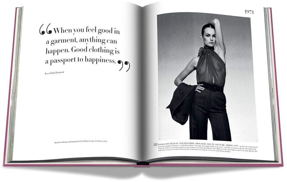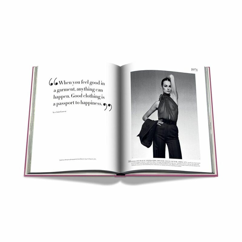 With esteemed fashion journalist and Saint Laurent expert Laurence Benaïm, Assouline has curated the 100 most iconic signature pieces from Yves Saint Laurent’s forty-year oeuvre, from the very first looks that appeared on the runway in his eponymous debut collection in January 1962 following his departure from Dior, to his final couture presentation upon his retirement in 2002.