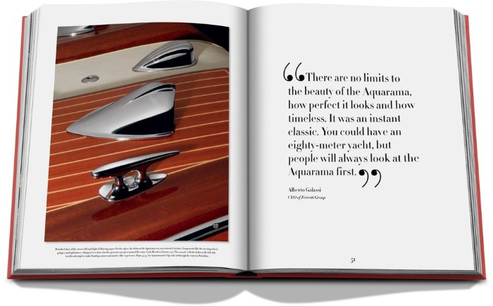 When it comes to glamour and high style on the seas, there's nothing more captivating than the Aquarama. Dreamed up by the legendary Carlo Riva, the run-about wooden speed has become an icon of Italian design and the Riva Aquarama book, edited by Assouline, celebrates its 60th Anniversary. Beloved for its clean lines, mahogany, glistening chrome details and signature robin's egg-blue and cream upholstery, the Aquarama reflected la dolce vita optimism of early-'60s Italy; it's impossible to picture the glittering Côte d'Azur and coasts of Europe without visions of endless summers spent lounging on the back of the boat in the warm summer sun, and the gentle roar of the engine as the Aquarama cuts through the surf.