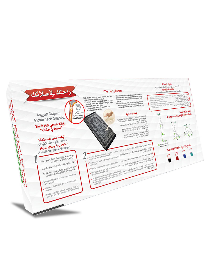 سجادة صلاة بتقنية إنوفيا تيك سجادة مريحة تأتي بطبقتين من إسفنج ميموري فوم فائق الجودة ما يوفر لك أقصى درجات الراحة الممكنة دون الشعور بالإجهاد أثناء الصلاة.