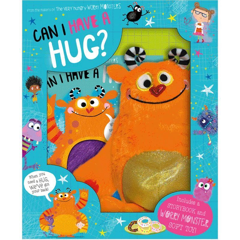 Can I have a hug? Book and Plush set by Make Believe Ideas The Worry Monsters are back, and ready to make your worries go away! This amazing set consists of a cute huggable monster plush, and a reassuring worry monster storybook, complete with a touch on the cover. In the book, the worry monsters explain that there are lots of ways to feel connected to people, even when it's not possible to have a hug. With sweet rhymes and beautiful illustrations, it's a wonderful book to share with children. Help children with their anxieties, great present for toddlers and children starting back at school, or starting a new activity.Box set contains toy and book. Great for 3 year olds and up.