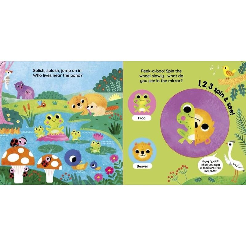 Come and explore outside to meet curious foxes, hopping frogs, busy beavers and all their friends in 1, 2, 3 Spin and See: Nature Detective.