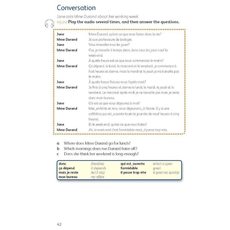 Beginners' French is for absolute beginners and those who’ve had some previous experience with the language and want to refresh their knowledge. Clear and simple explanations make the course appropriate and accessible to anyone learning French. There are extensive illustrations and tools to help you plan your studies and track your progress, all designed to support learning on your own. This course is also ideal to use with one-to-one tutoring and as a classroom course, and it’s the perfect resource to pair with a language-learning app.
