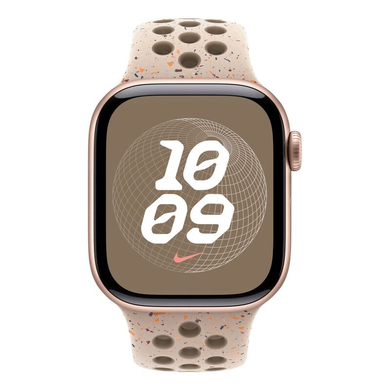 Made with compression-molded perforations for breathability, the Nike Sport Band is durable and strong, yet surprisingly soft. It features colorful flakes that create a randomized pattern, making each band completely unique. The smooth, dense material drapes elegantly across your wrist and feels comfortable next to your skin. A new aluminum pin-and-tuck closure gives the pin a fresh matte finish.