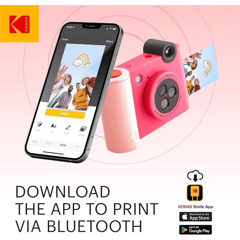 Kodak Smile+ 2x3 Digital Instant Camera with Mobile Photo Printer - Effect Lenses - Fuchsia