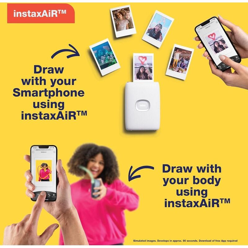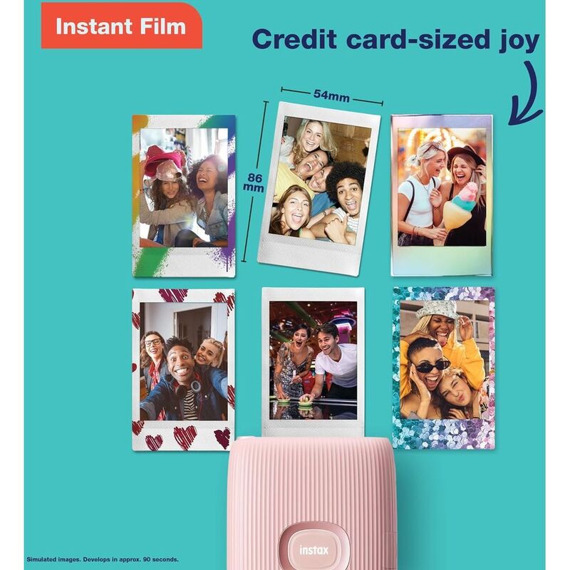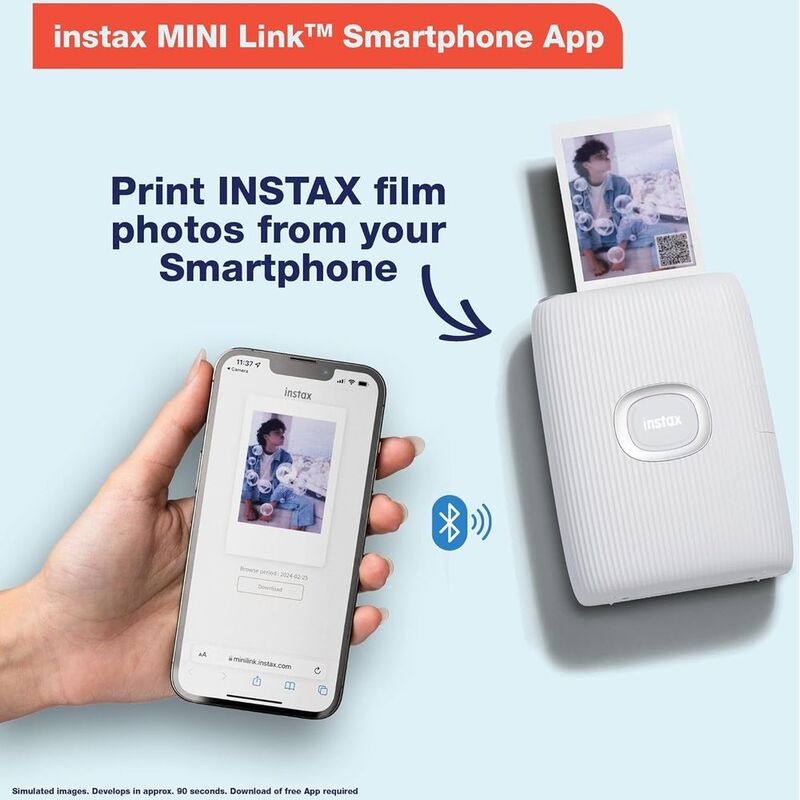 High-Speed Printing Use the free downloadable instax mini Link App to easily print multiple images right from your Smartphone in only 15 seconds (film development time approximately 90 seconds)! You can even print your favorite still from a video!