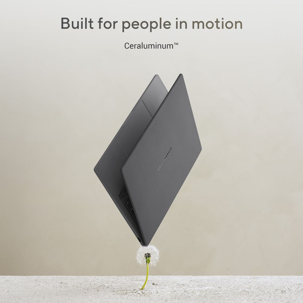 The all-new minimalist design, featuring tone-on-tone colors and nature-inspired materials, exudes elegance. The laptop lid, keyboard frame, and base are crafted from Ceraluminum, our amazing anti-wear, anti-scratch and smudge-free material