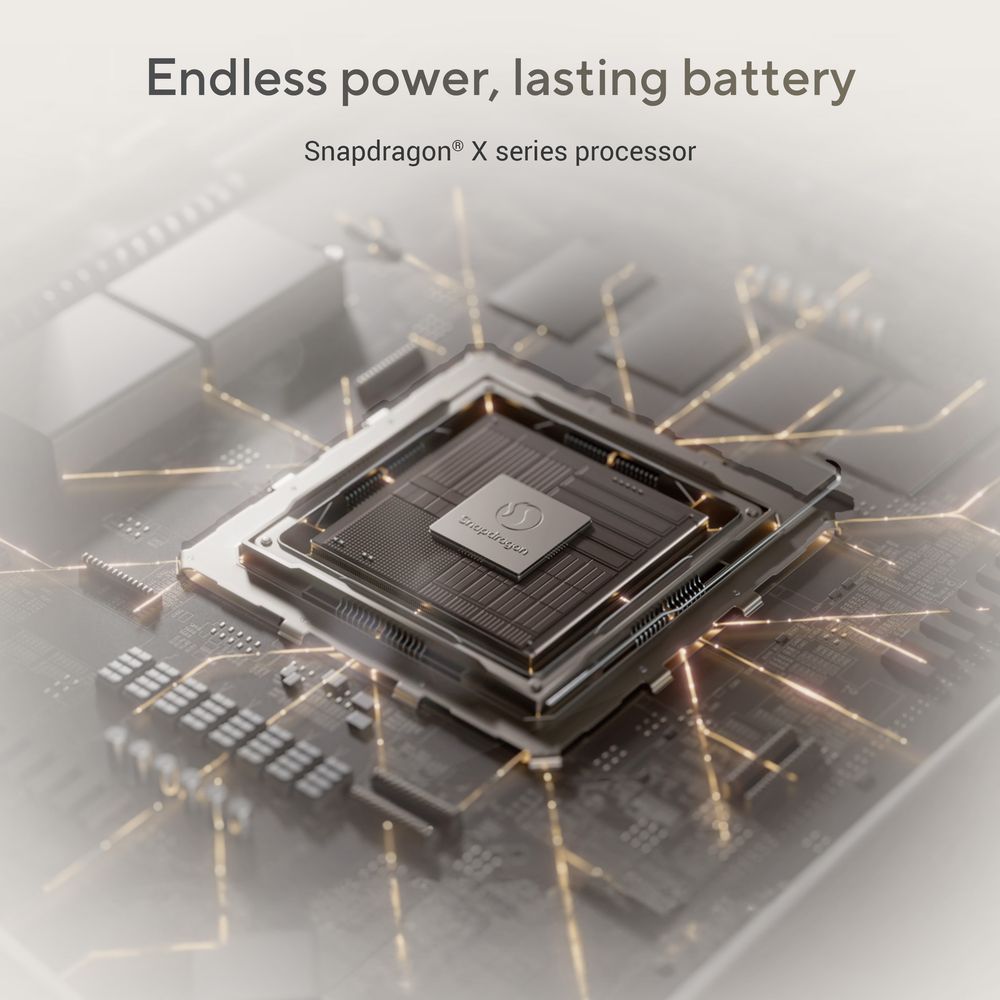 • With Snapdragon X, enjoy up to an impressive 32 hours* of battery life.