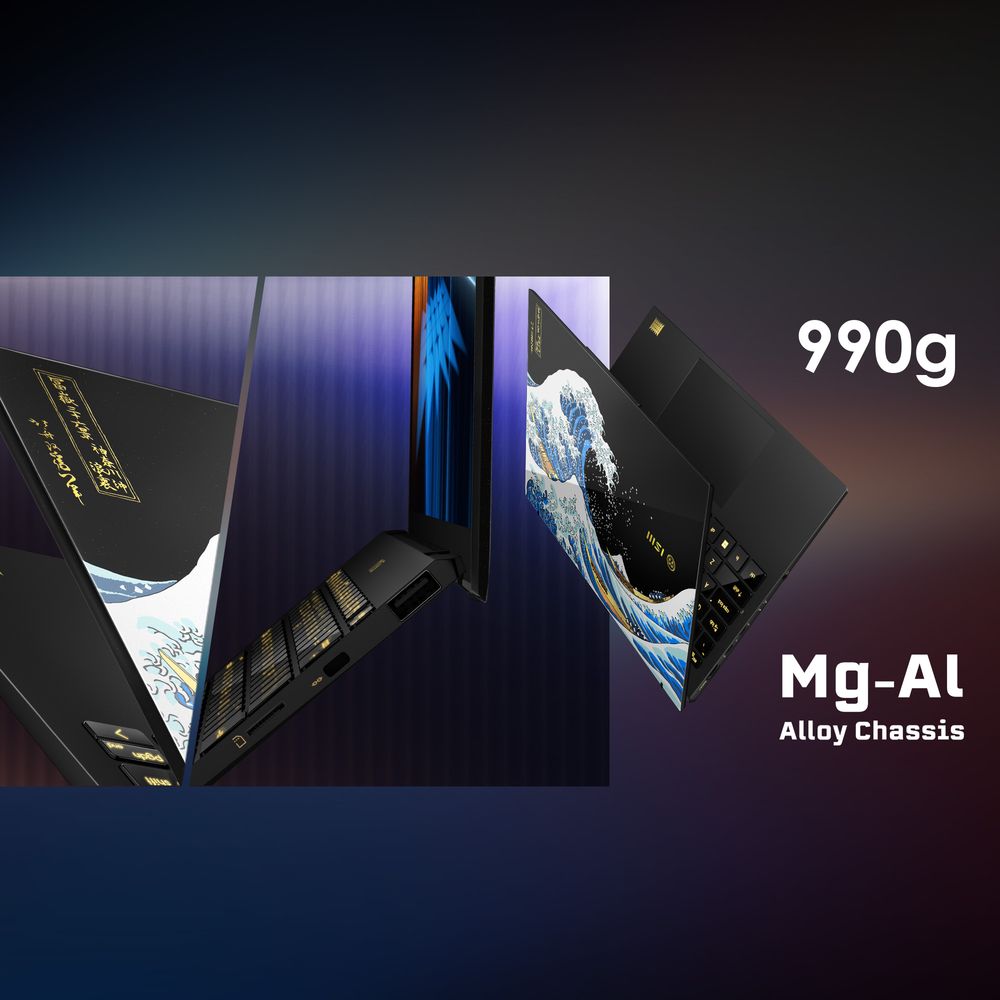 Feast your eyes on the Prestige 13 AI+ Ukiyo-e Edition combines MSI's cutting-edge AI technology with Japan's century-old lacquer and maki-e craftsmanship to pay tribute to the world-famous Ukiyo-e painting - The Great Wave off Kanagawa. Powered by up to an Intel® Core™ Ultra 9 processor with the latest Intel® Evo™ Edition certification, to boost forward a unique and luxurious design and extraordinary collaboration that spans time and space.
