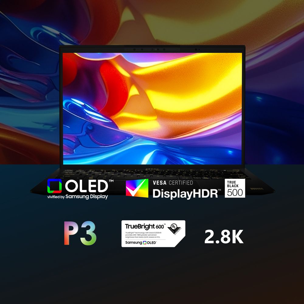 - 13.3” 2.8K (2880 x 1800), 16:10, 100% DCI-P3 (Typical),