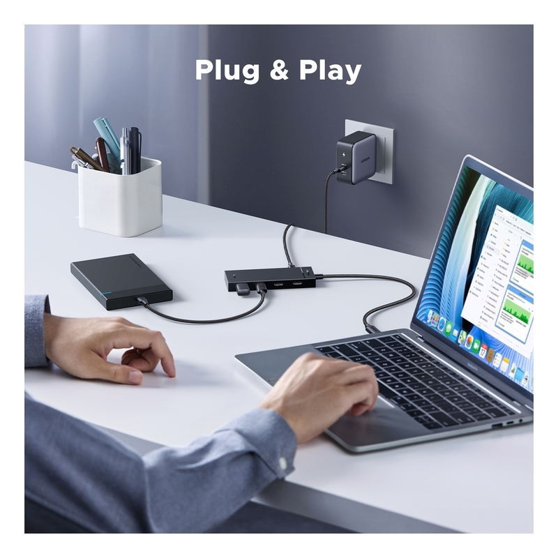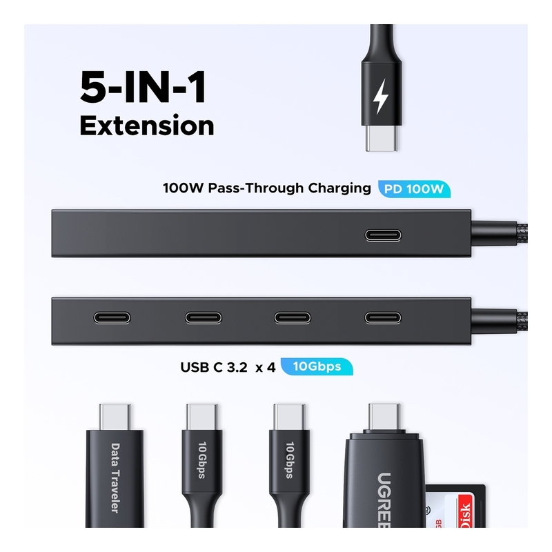 UGREEN 5-In-1 USB-C Hub 4X USB-C 3.2 + 100W PD - Space Gray