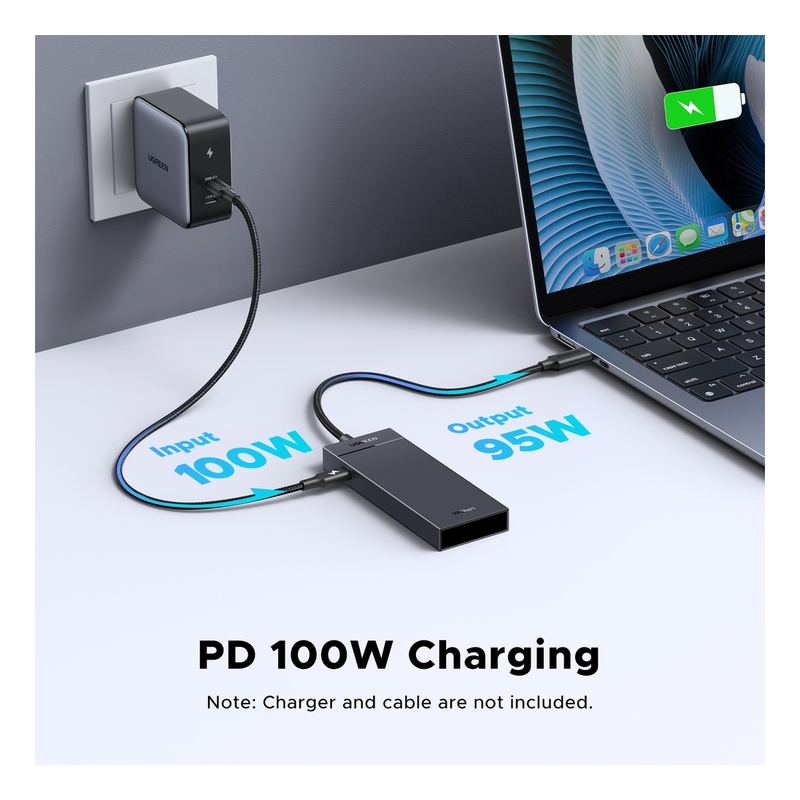 - PD 100W Charging Port: With the PD 3.0 100W power supply port, The USB C Hub supports up to 95W PD charging for your host device like a laptop, tablet, or smartphone, and no need for an additional charging port. (Charger and charging cable are not included)