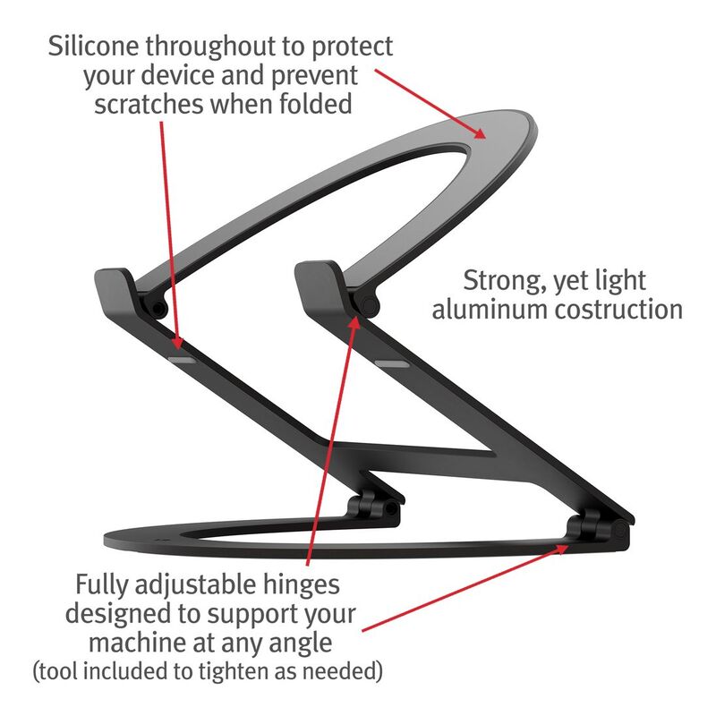 • Elevates your MacBook screen + camera up to 22 inches