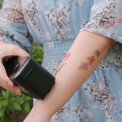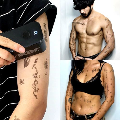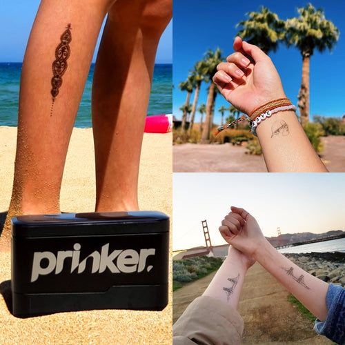 - INSTANT TEMPORARY TATTOOS IN ONLY 3 SECONDS: Express yourself with black temporary tattoos. Upload any design and use the Prinker to glide it on skin in only 3 seconds. Try a custom instant tattoo with old-school phrases, minimal shapes, or bold designs. DIY pieces that speak your mind.
