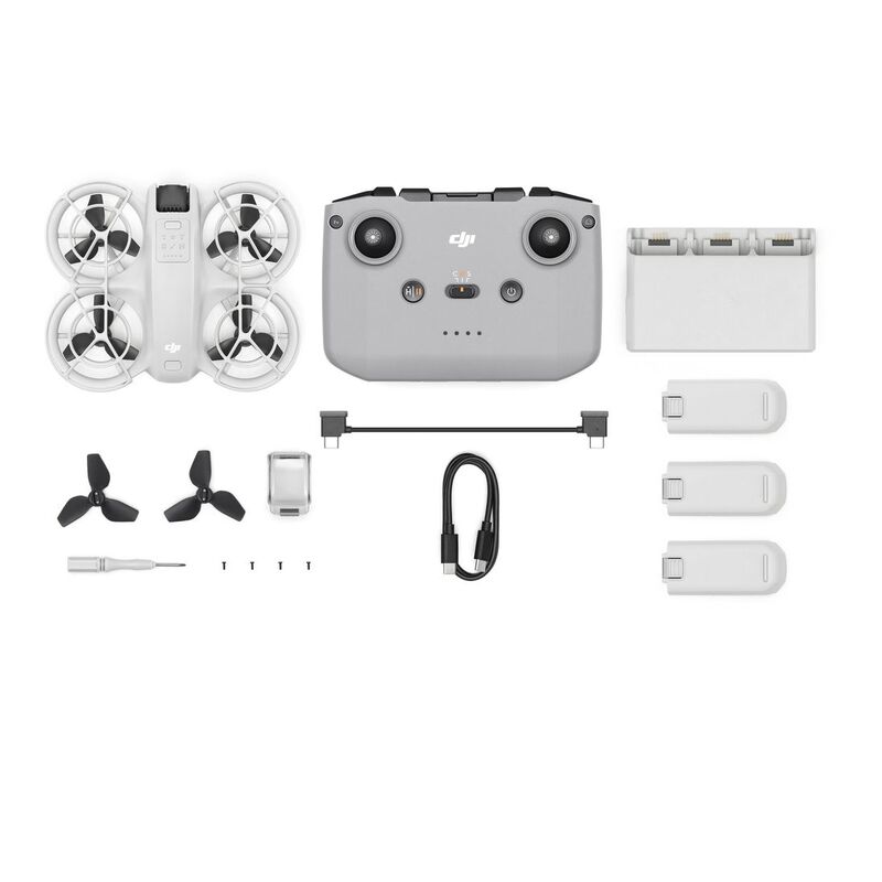 The DJI Neo Fly More Combo includes the aircraft, an RC-N3 Remote Controller, three intelligent batteries, a two-way charging hub, and more, providing superior flight control and camera operation, for everyday to precise aerial creation.
