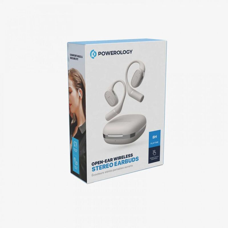 - These wireless earbuds from Powerology offer long-lasting battery life, smart controls, and an open-ear design for comfort and situational awareness, enhanced by deep bass and dynamic drivers for high-quality sound.