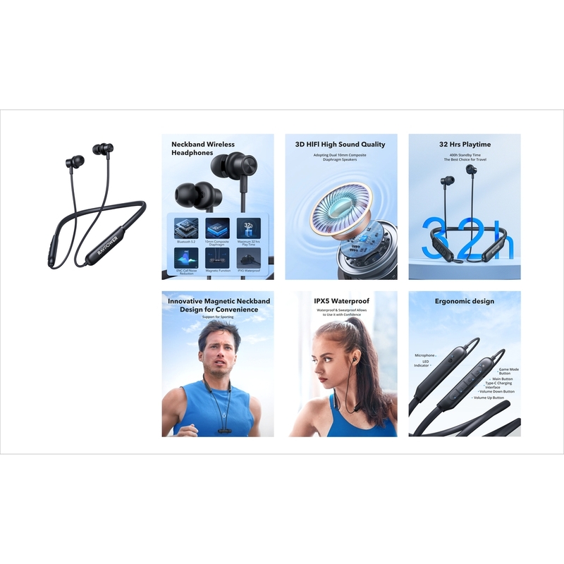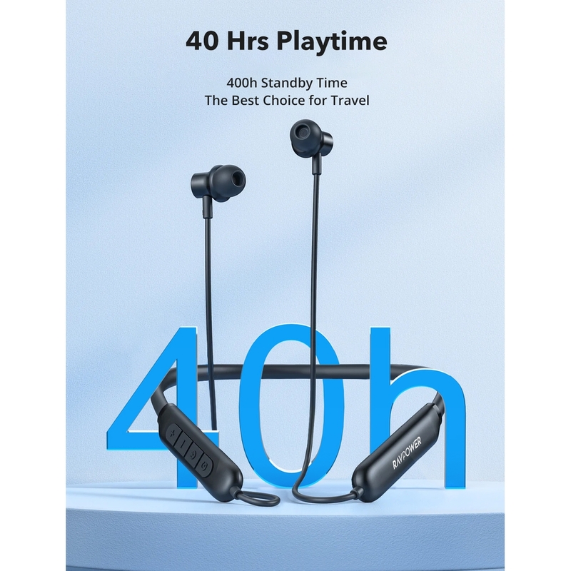 Ravpower BH1008 Magnetic Wireless In-Ear Neckband 40Hrs - Black