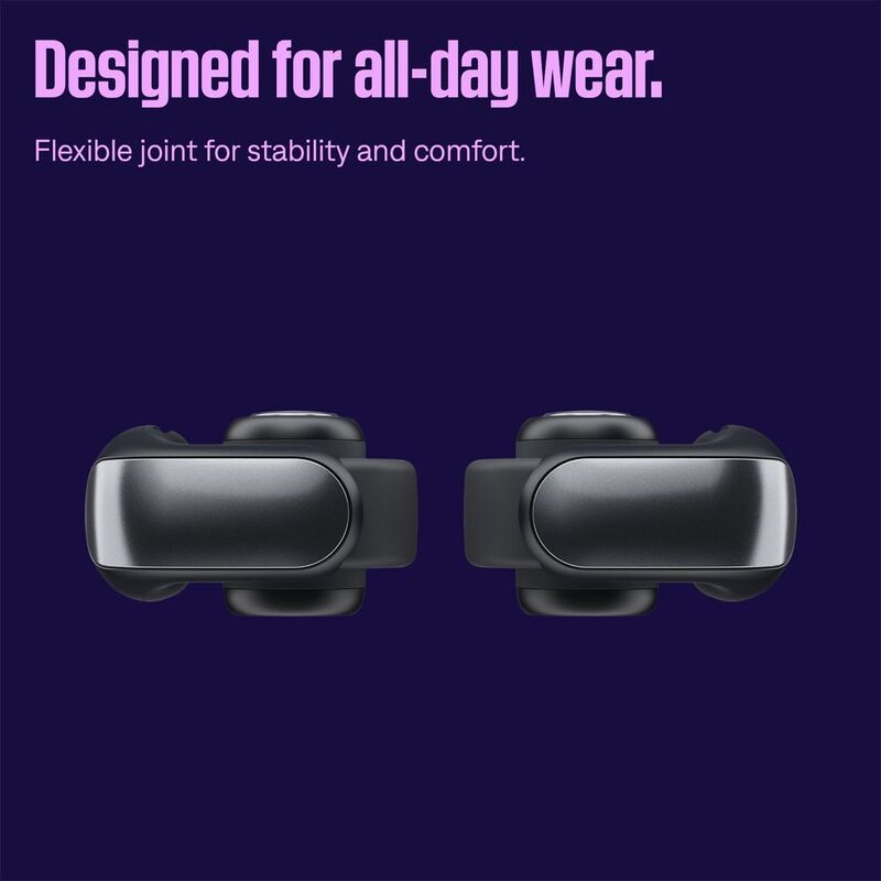 Designed for all-day wear, you'll put these earbuds on and never want to take them off. The Bose Ultra Open Earbuds feature a flexible joint and a light-as-air-grip — you’ll forget you’re even wearing them. Simply hook it gently around the back of your ear and you’ll stay open to the world around you. - Stay charged and never miss a beat.