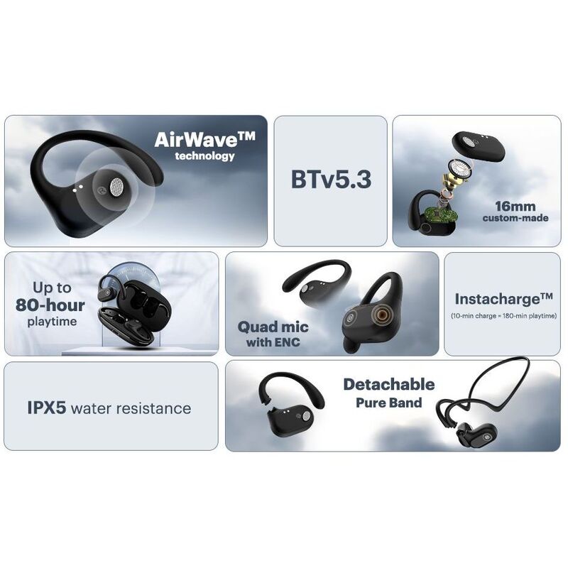 - InstachargeTM : Power up your earbuds for up to 10 hours in just 10 mins of charging.
