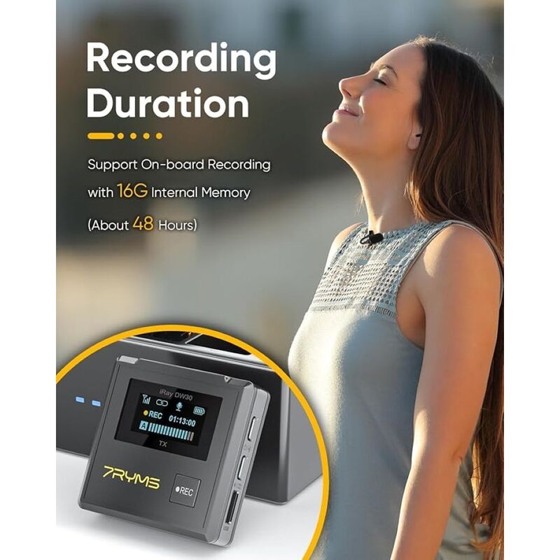 - 16G Internal Recording Storage: The iRay DW30 Wireless lavalier microphone with 16GB internal storage, record up to 48 hours of audio as backup. Ensure the integrity of the recording data without worrying about losing audio.