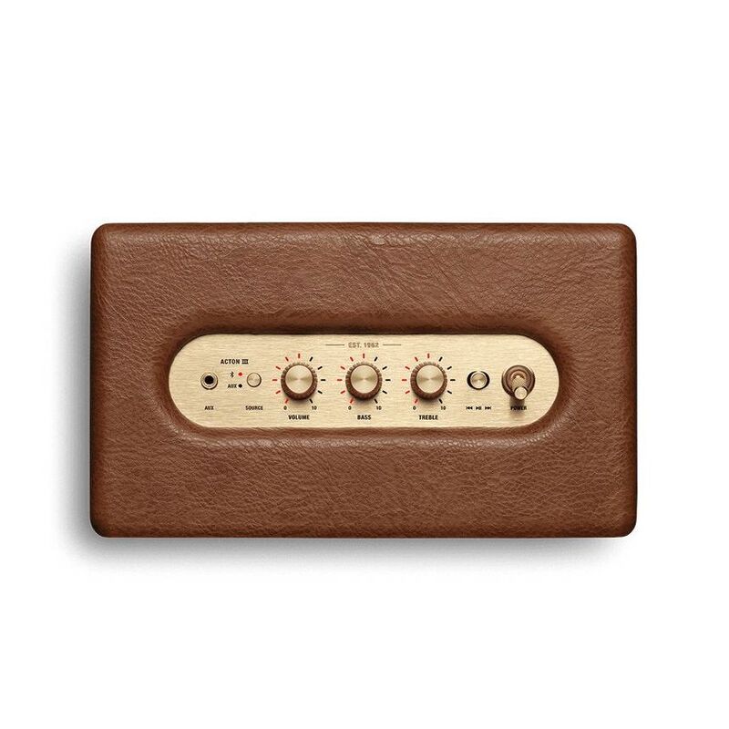 Marshall has taken its signature rock ’n’ roll home speaker line-up and given it a stripped-back look that makes a loud statement. Its iconic design knocks all other speakers off the shelf. Signature details such as the Marshall script and brass control knobs adorn the speaker, echoing the legacy of rock ’n’ roll. Choose the finish that fits you – original Black, vintage Cream or relaxed Brown.