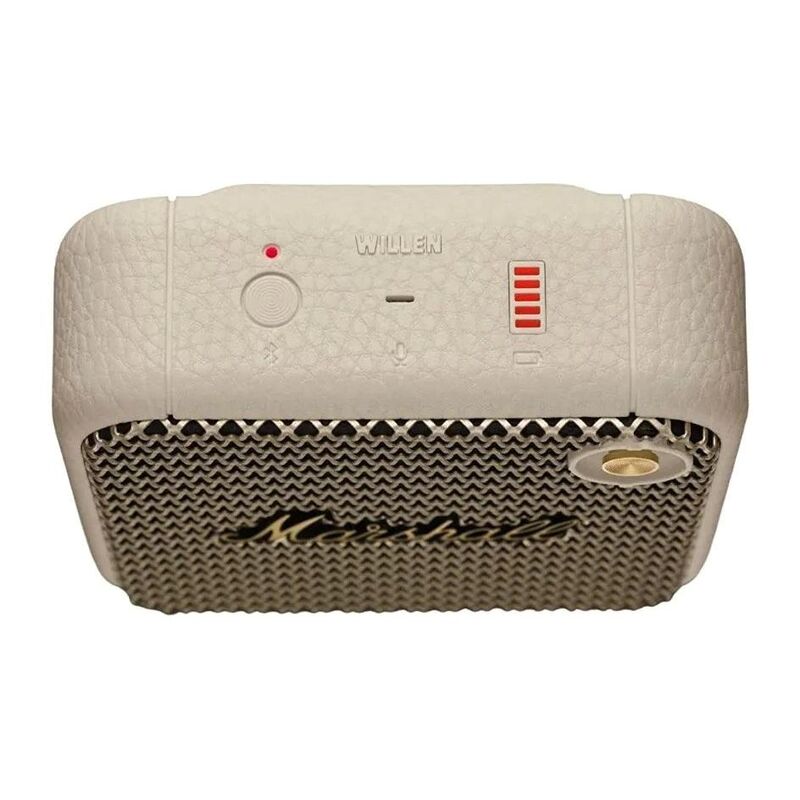 Willen is the mighty wireless speaker that is made to go everywhere with you. This speaker brings you the heavy Marshall sound you love with one 2’’ full range driver and two passive radiators. This outdoor speaker couldn’t care less about what you throw at it with its top-of-class IP67 dust- and water-resistance rating. Willen brings together the iconic Marshall design with a ruggedness that dares you to push its limits. All this, plus its hefty 15+ hours of listening on a single charge and mounting strap mean that Willen is raring to go wherever you go.