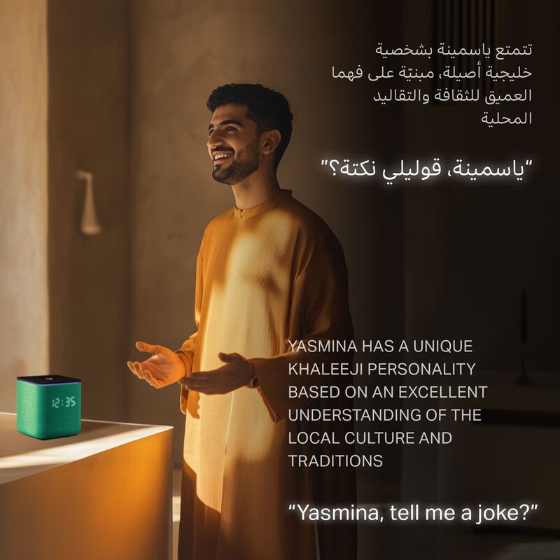 "Yasmina’s advanced microphone array features four microphones that ensures it receives your requests even in a large and noisy room. whether the ambiance is lively with conversation or hushed to a whisper, Yasmina remains responsive and ready to assist.