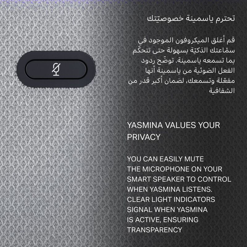 You can easily mute the microphone on your smart speaker to control when she listens. Clear light indicators signal when Yasmina is active, ensuring transparency.