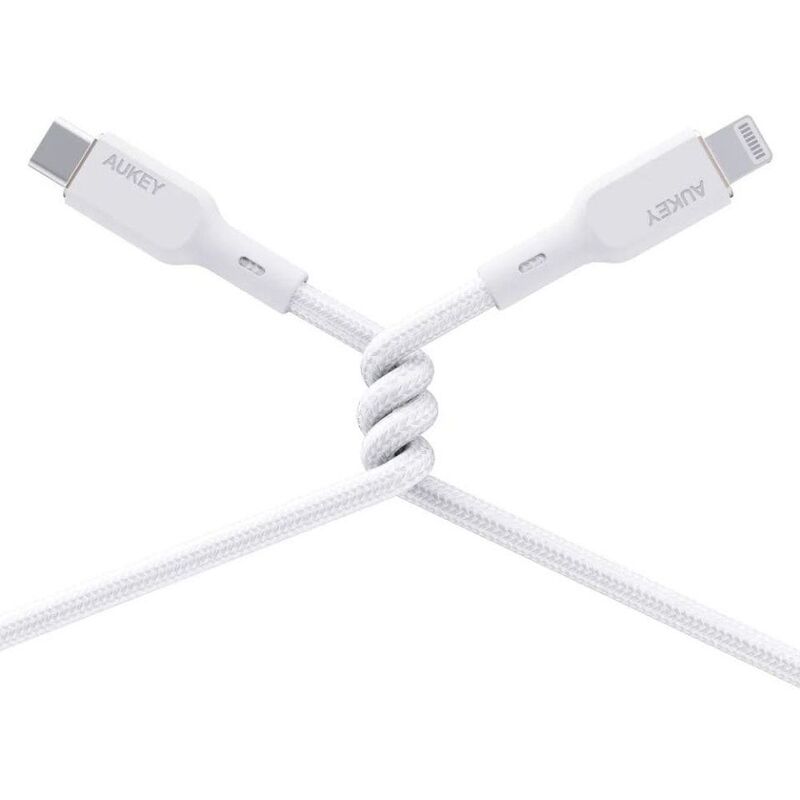 Aukey 1M Nylon Braided USB-C To Lightning Cable - White