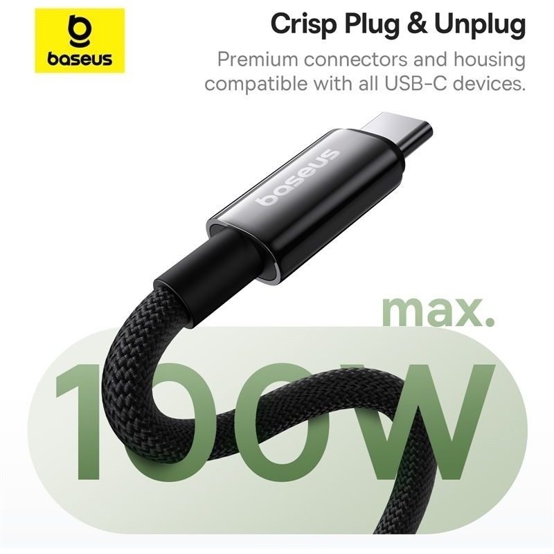 Baseus Tungsten Gold Magnetic Charging Cable USB-C to USB-C 100W 1m - Cluster Black