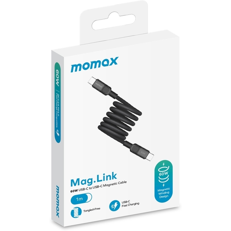 Momax Mag.Link 60W USB-C to USB-C Magnetic Cable 1m - Black