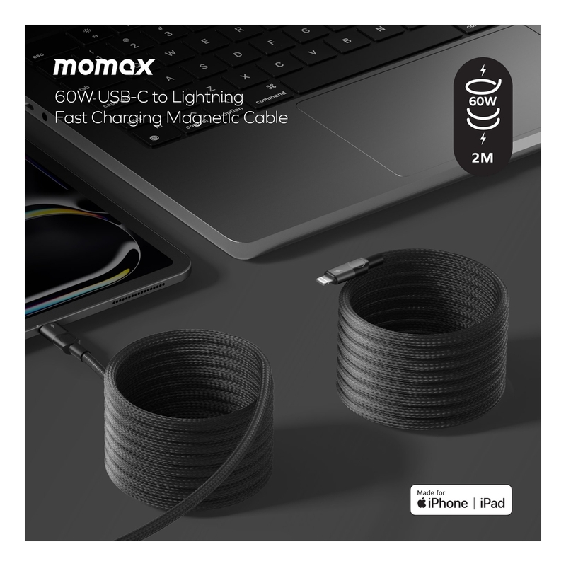 Momax Mag Link USB-C To Lightning Magnetic Cable 2m - Black