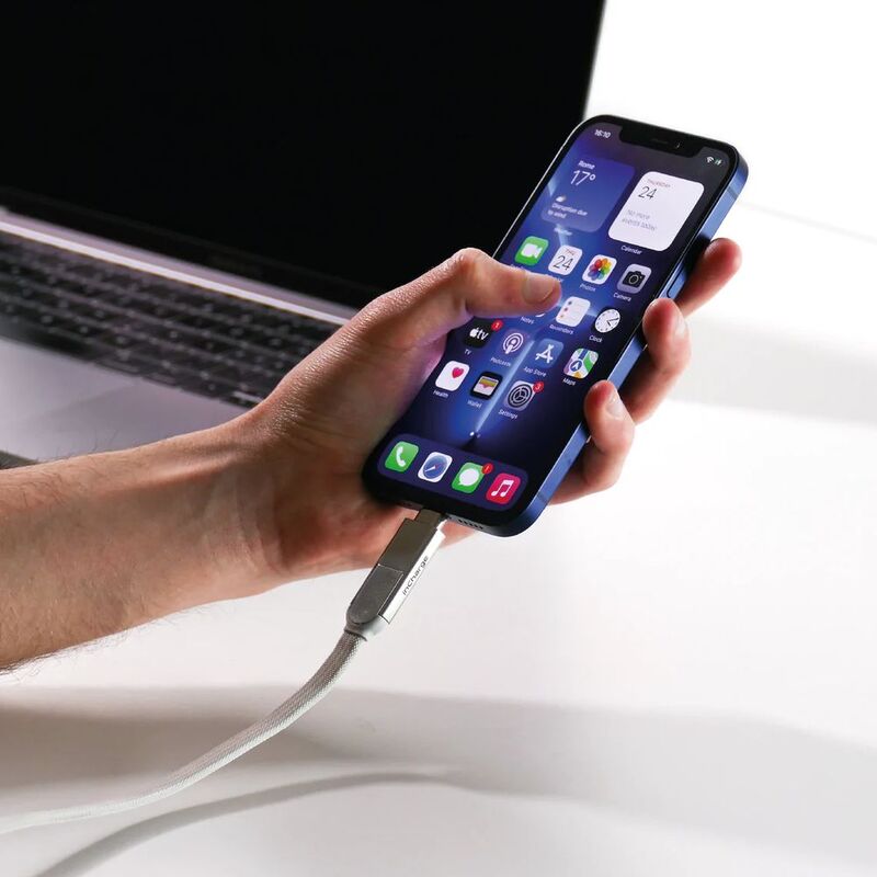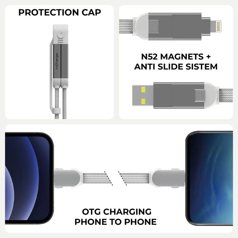 inCharge® XL 30cm is the only cable you will need for home and travel. It features 2 Inputs and 3 Outputs, for a total of 6 different connections, it allows Ultra Fast Charging up to 100W and Apple's Fast Charging up to 27W.