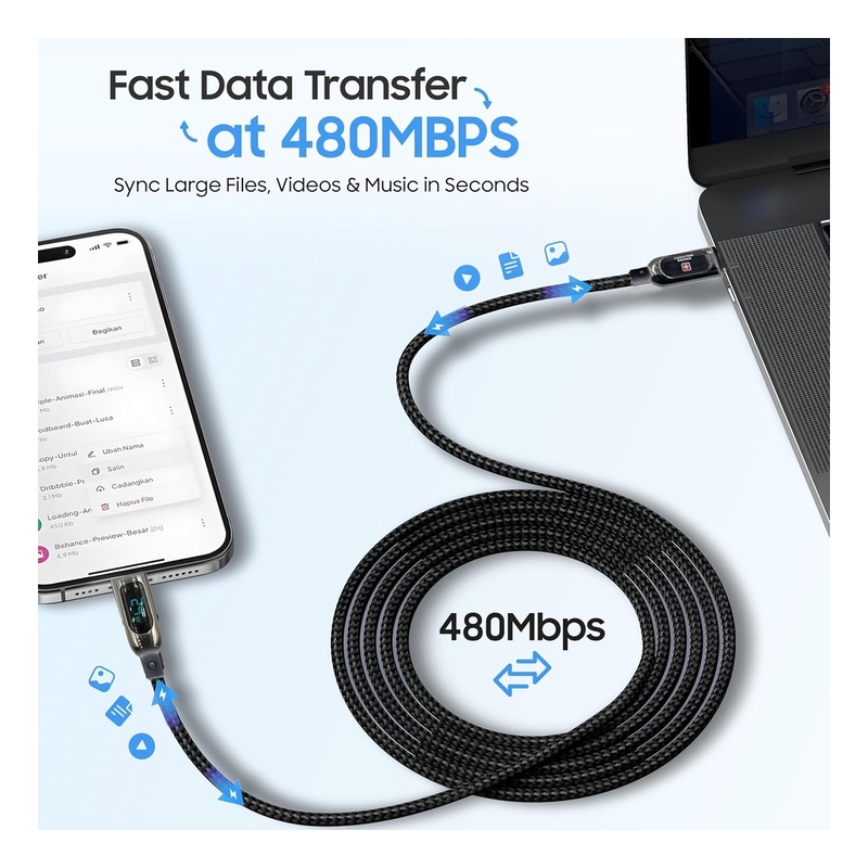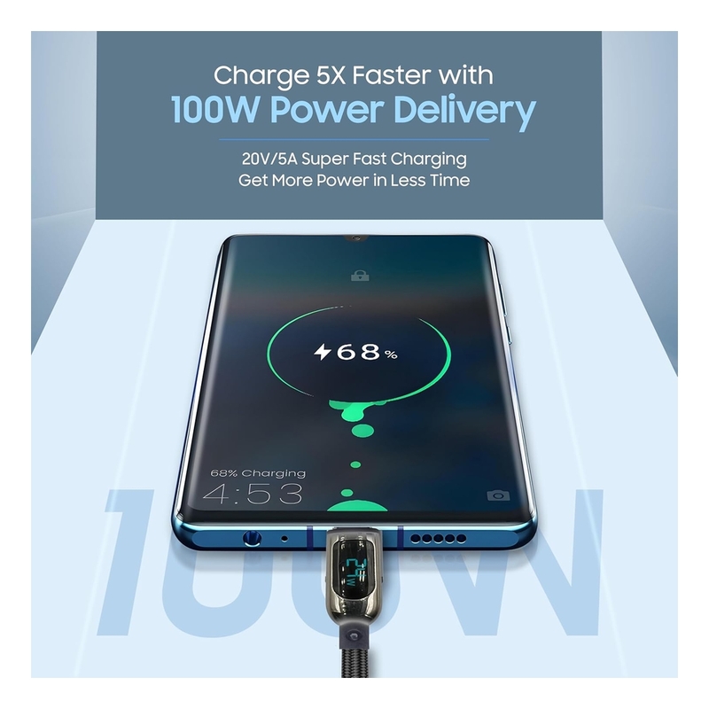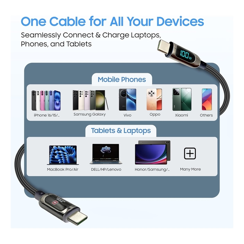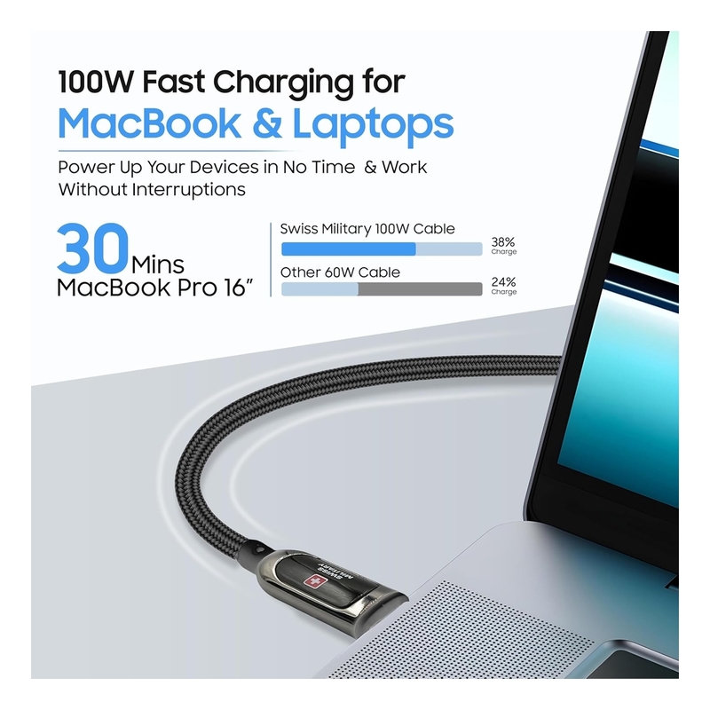 Swiss Military 100W USB-C To USB-C Braided Cable With LED 1m - Black