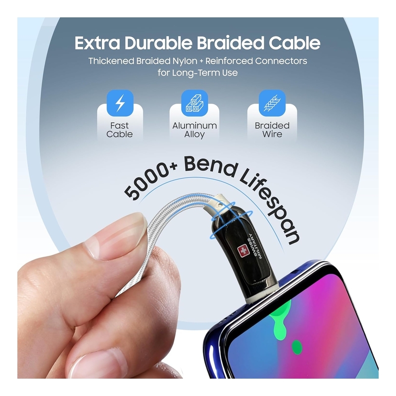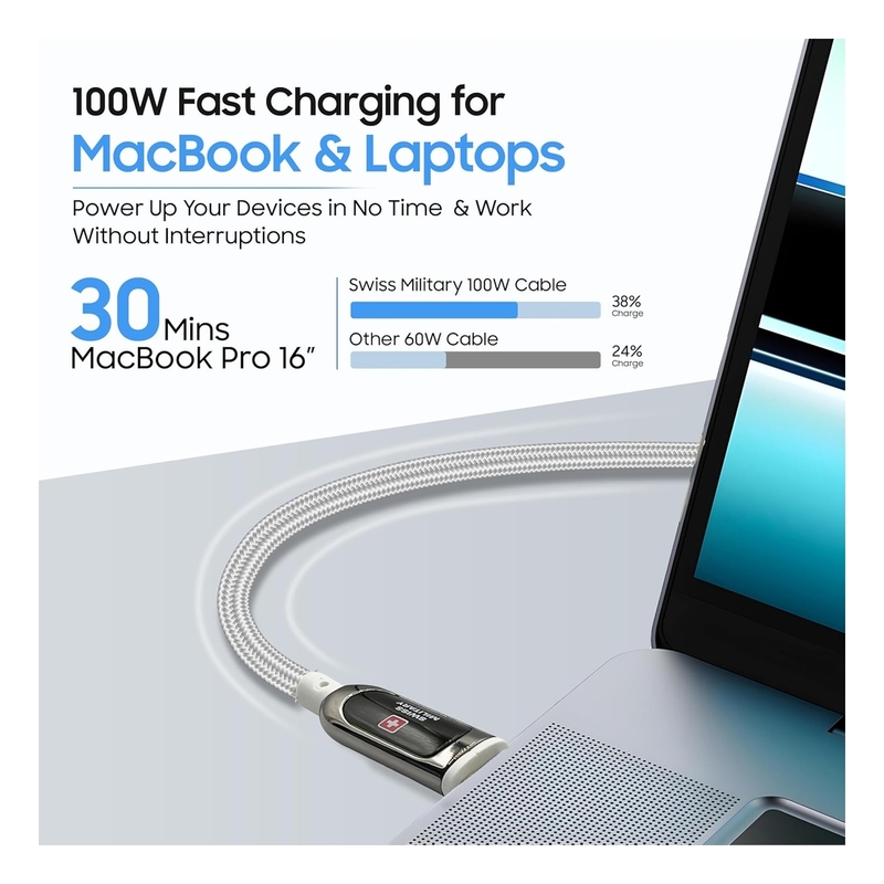 Swiss Military 100W USB-C To USB-C Braided Cable With LED 1m - White