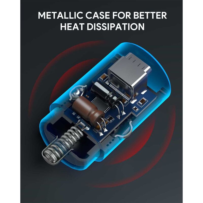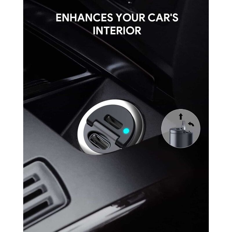The Aukey PD Nano Car Charger is a compact and powerful charging solution for your car. With two USB-C ports, it can charge two devices at once, delivering up to 30W of power. Its sleek black design adds a touch of style to your car interior.Plus, AUKEY's Dynamic Detect technology ensures power is allocated between the two ports efficiently.