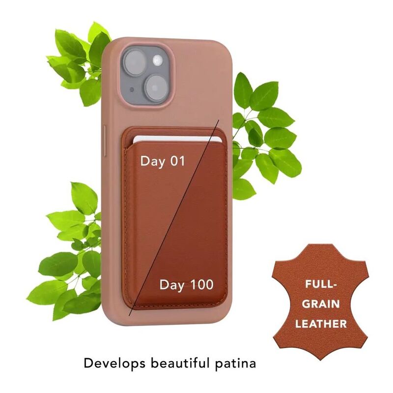 Carry your wallet essentials securely without the added bulk of a folio wallet case. The slim magnetic wallet quickly snaps into place and fits snugly over your MagSafe-compatible case or phone. Handcrafted from durable full-grain leather for a durable and luxurious wallet that only gets better with age.