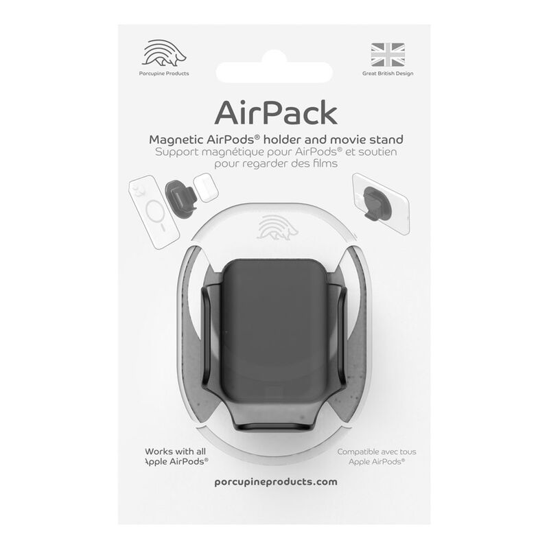 - AirPack is the back-pack for your AirPods, keeping them safe and close to hand, whilst also making your phone easier to hold. AirPack uses extra strong magnets to attach to your MagSafe® phone.