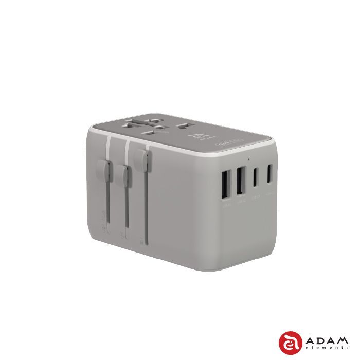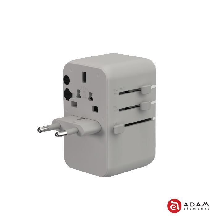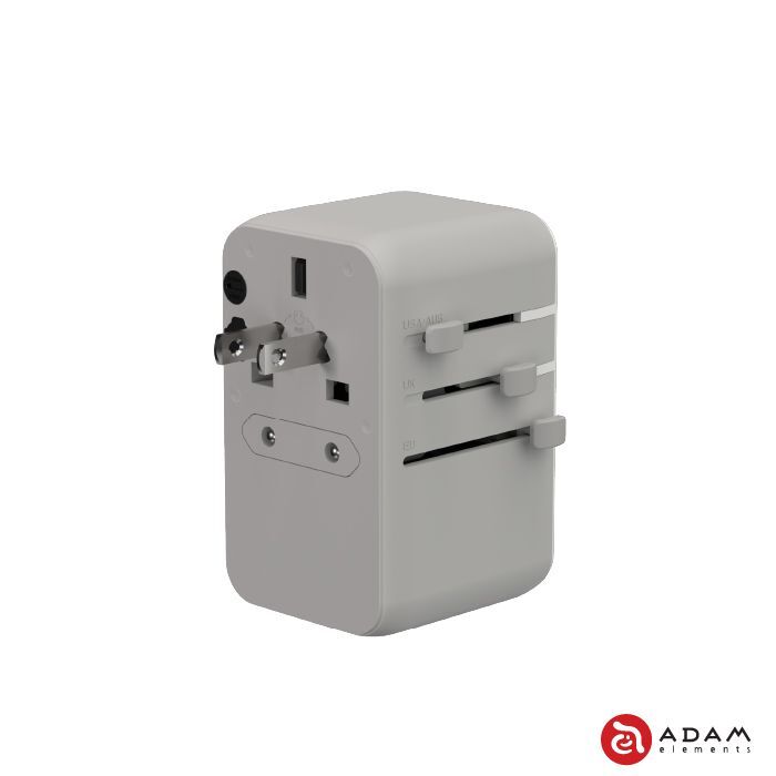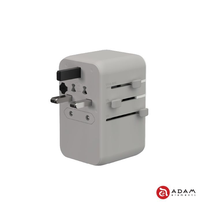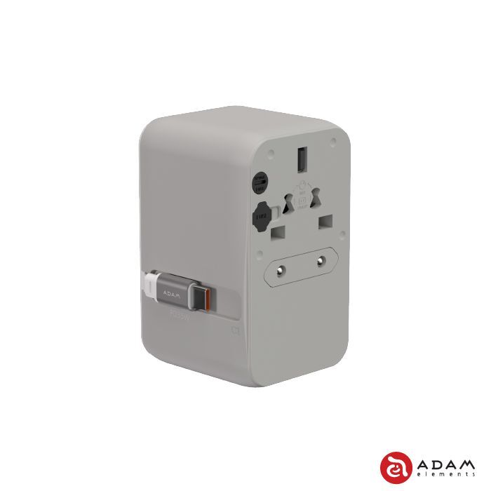 Adam Elements T35L 35W Universal Travel Adapter With Built-In USB-C Cable - Silver