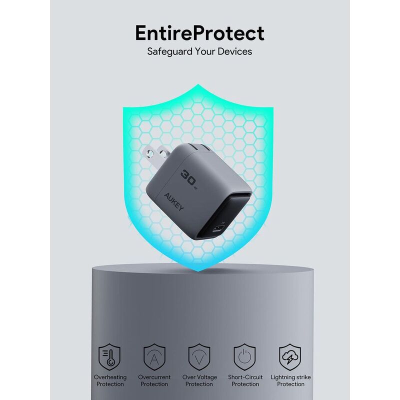 Aukey Gan Fast Charging 30W Wall Charger - Grey